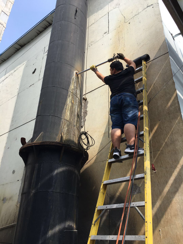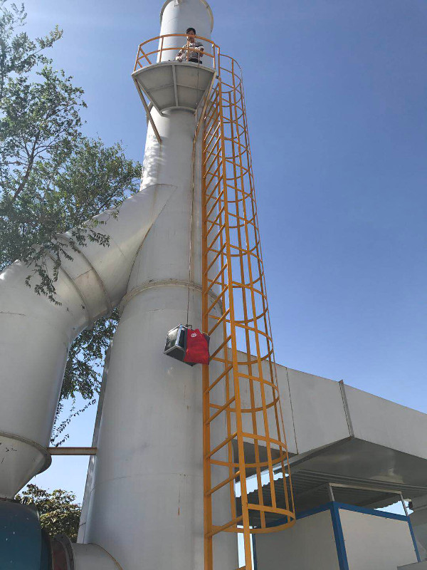 采样人员在现场进行锅炉烟尘、废气排气筒的采样