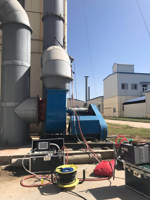 采样人员在现场进行锅炉烟尘、噪声的采样