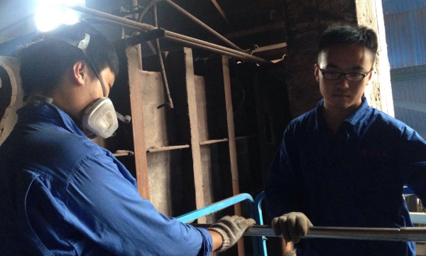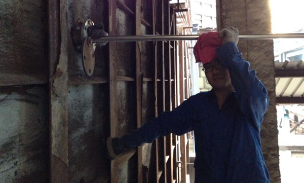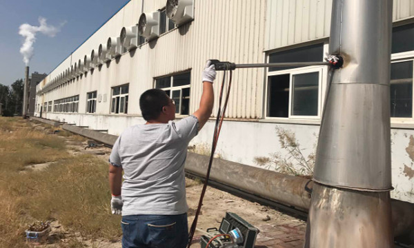采样人员在现场进行锅炉烟尘的采样,同时对烟气成分进行现场测定